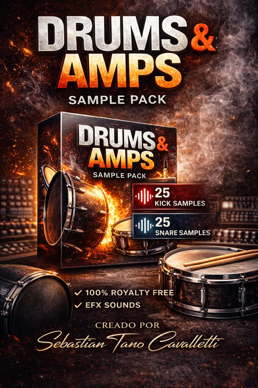 DRUMS & AMPS ES UN SAMPLE PACK CON 25 BOMBOS Y 25 TAMBORES PROCESADOS POR EQUIPOS DE GUITARRA Y BAJO. DESCARGATE GRATIS ESTA COLECCION EN ESTE LINK.